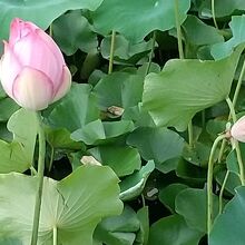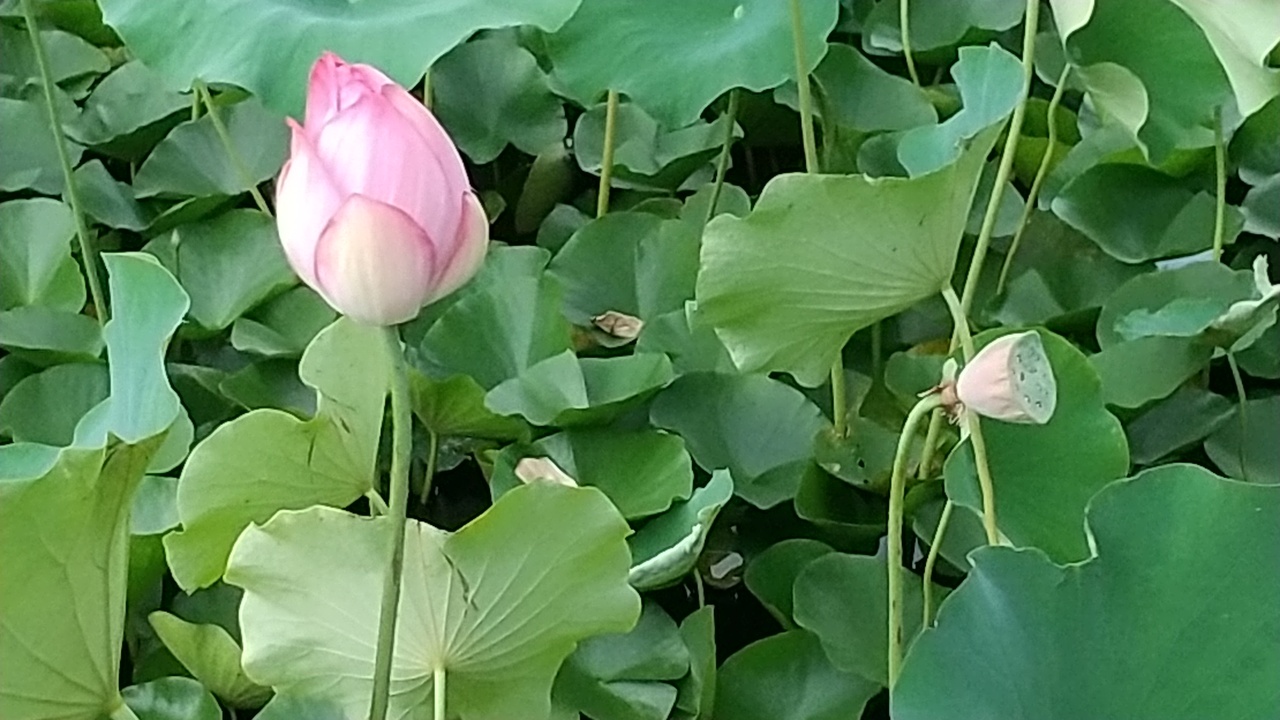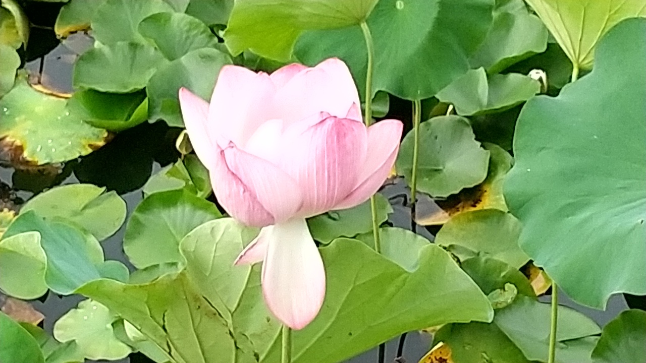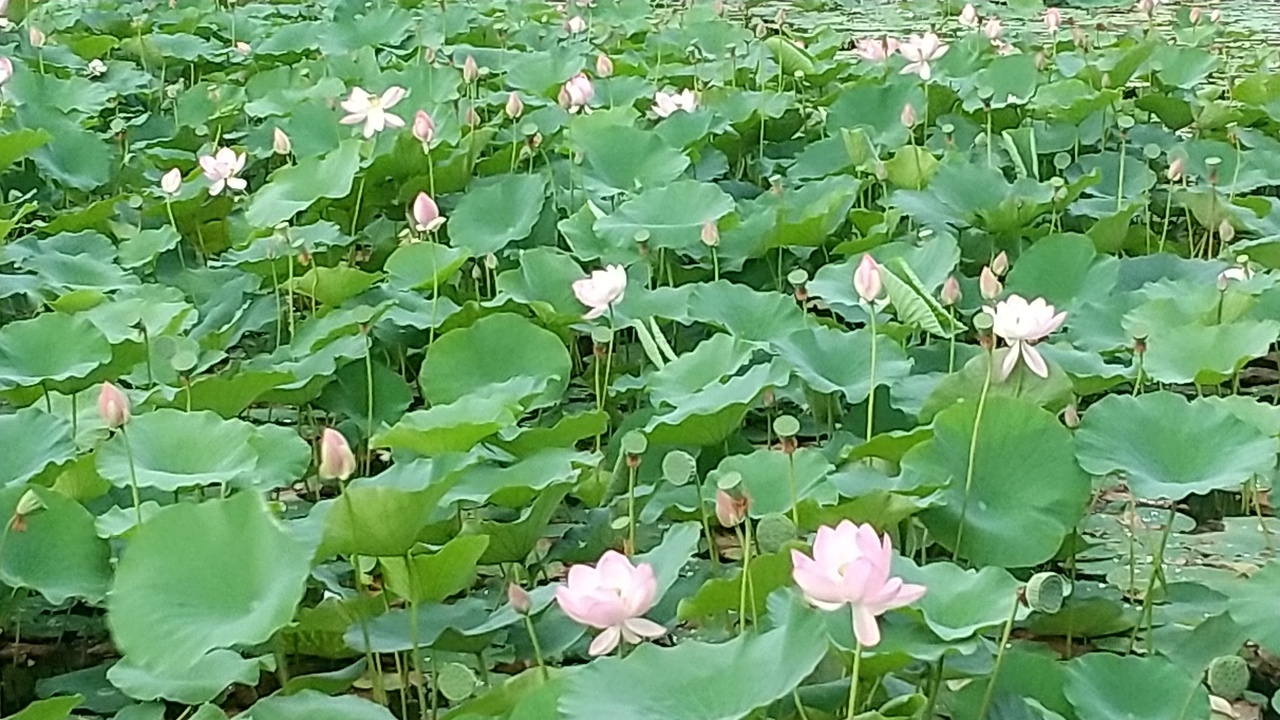 夕暮れどきの蓮田は心地よい風が吹きゆらゆら揺れる蓮の葉っぱが涼しげでした。