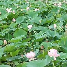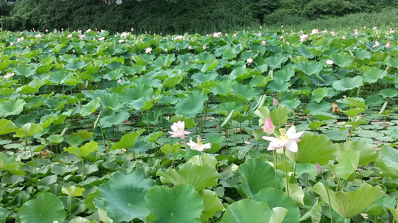 ANAクラウンホテルに宿泊し徒歩5分弱の場所。お堀には一面に蓮の花が咲き素晴らしい光景です。これほど広大な場所一面が蓮田なのは初めて見ました。
