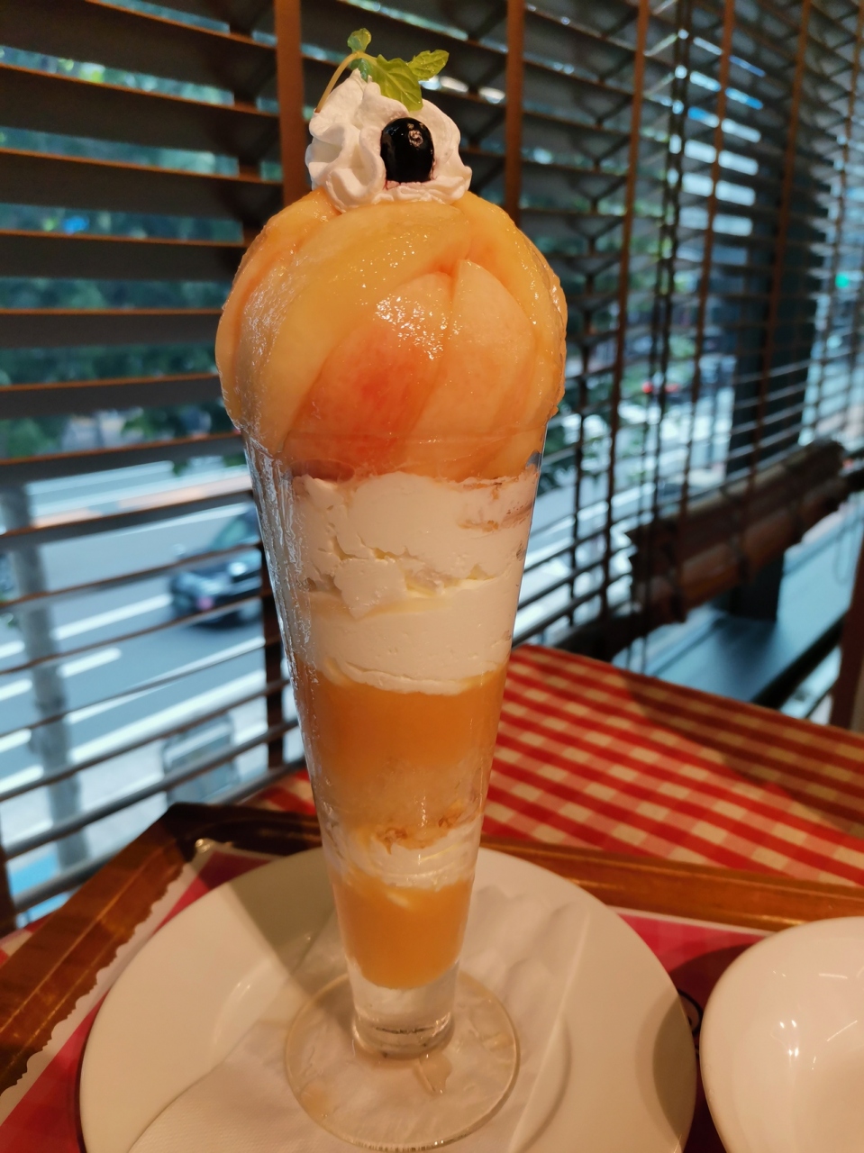 桃のデザート写真に惹かれて、アンテナショップ2階にあるカフェに行ってみることに。デザートは色々あったのですが、桃を丸ごと一個使用しているというビジュアルが最高のパフェを食べてきました。いや~さすがお高いだけありますね。とってもとっても美味しかったです。甘~い桃が口の中でとろける感じが何とも美味しくて♡来年も食べに行っちゃうかも!