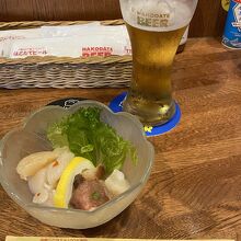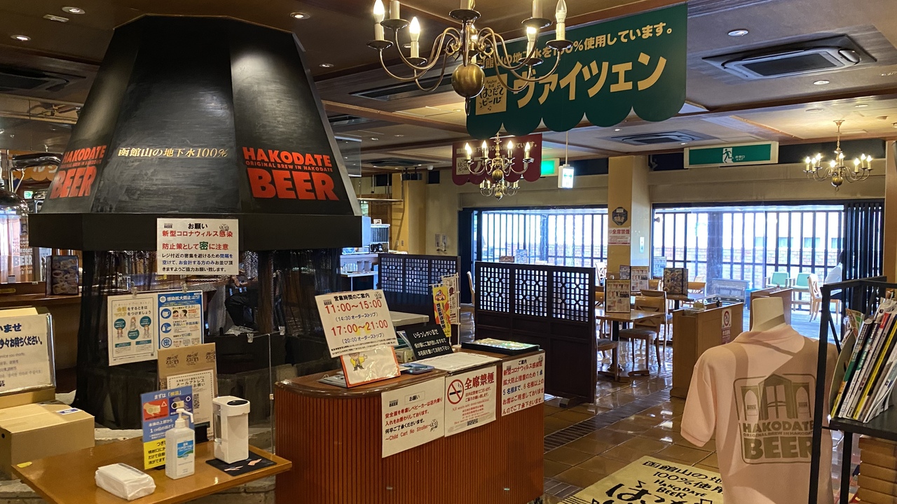 全国クラフト地ビール巡りで来ました。函館朝市から徒歩5分の煉瓦倉庫の近くにあります。中は地ビールレストラン特有の大きなビールタンクが並んでます。メニューは海鮮、肉、野菜からデザートと種類豊富です。地ビールも種類が多いです。