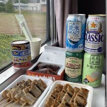 函館駅前のテイクアウト店で買いました。本当はやきとり弁当大盛にしようとしましたが、ご飯ものは30分かかるとのことで、串物がたくさんあったのでこちらを買いました。地ビールやドリンクもあります。函館駅の真横にあるので便利です。