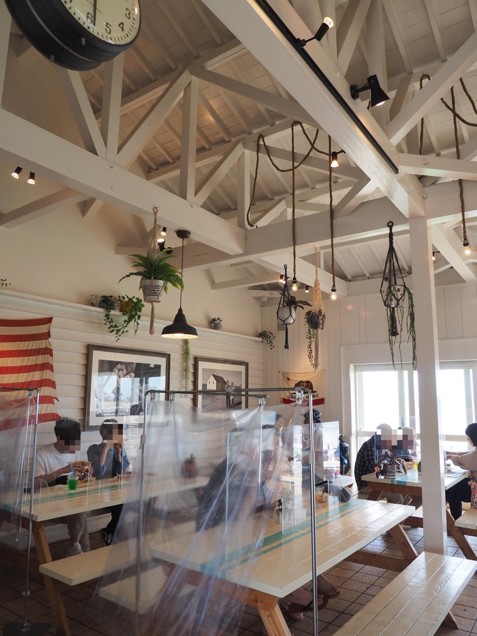 テラス席は、ビーチを眺めながらハンバーガーを食べられます。
