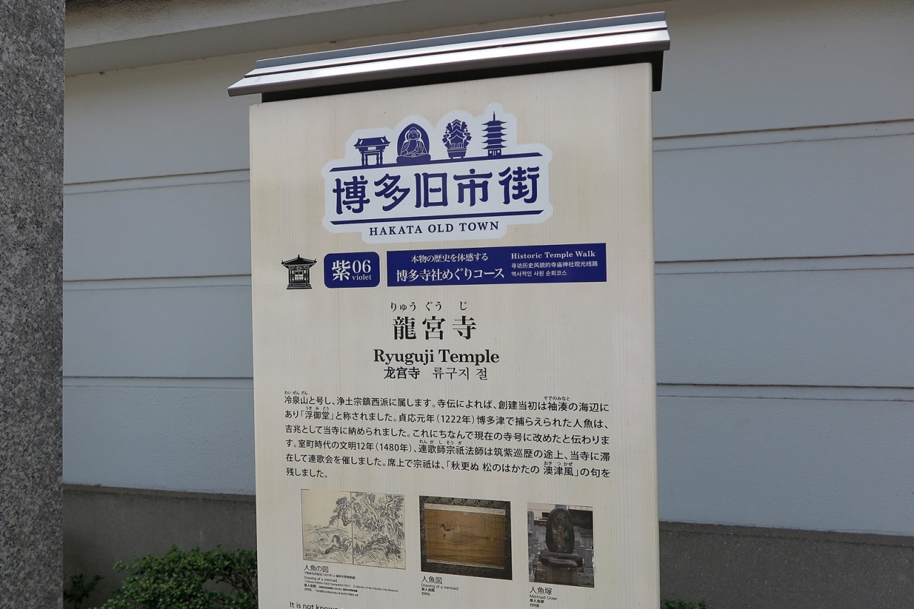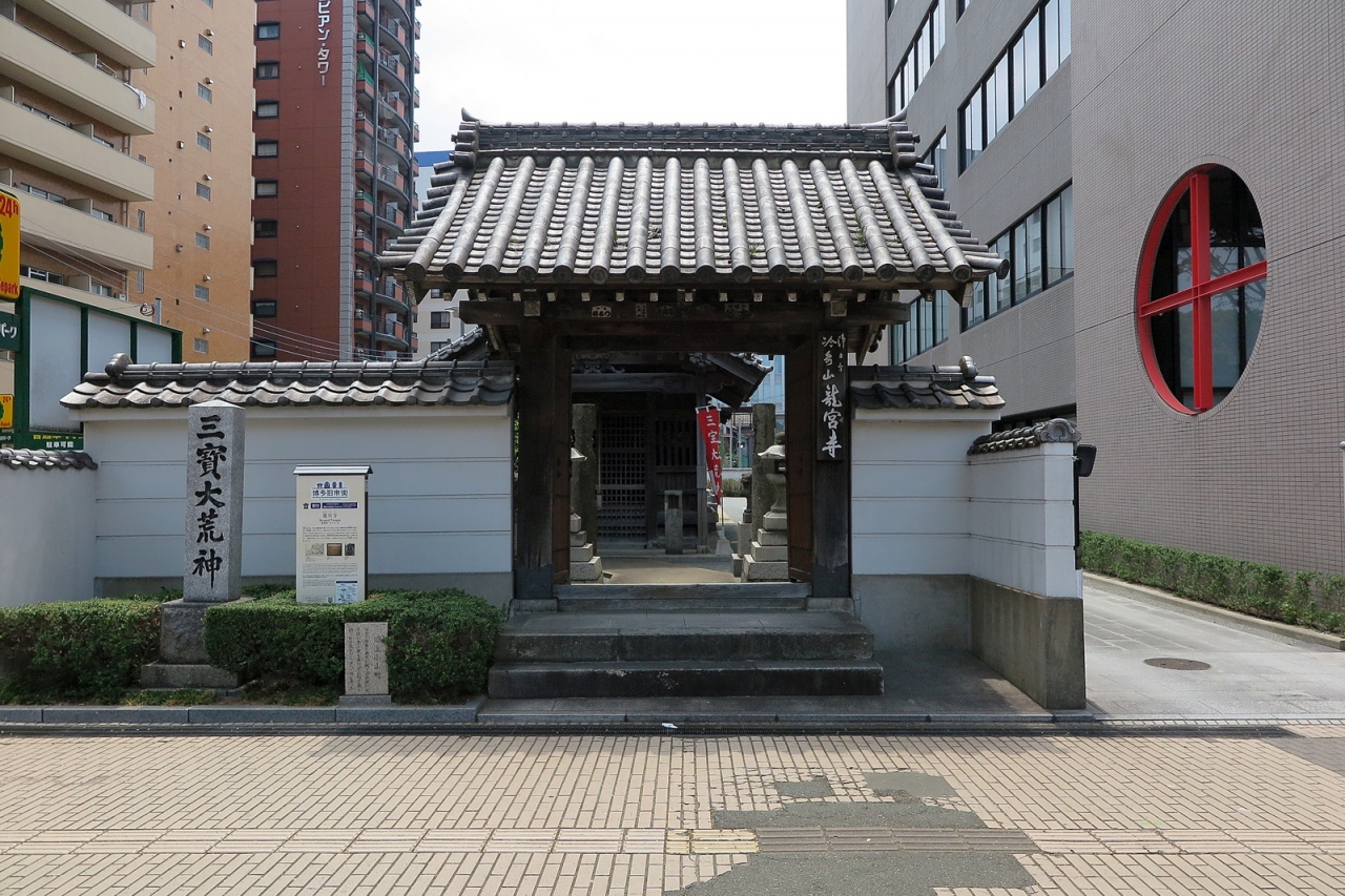 「大博通り」沿いに小ぢんまりとした境内をもつ「龍宮寺」です。ロマンチックな名前の理由が紹介文にありました。なんと人魚ですって。境内入口には「信州善光寺如来安置」という碑があり、また「本堂」・「観音堂」は質素で良い雰囲気でした。