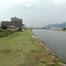 県道155号線、春日川にかかる、その名も春日川橋の上から川を眺めてみました。悠々と流れる川の河川敷は刈り込まれた緑地になっており、彼方には「屋島」。あいにくの天気でしたが、開放感があって気持ちのよい眺めでした。車や歩きで通る方は少ないと思いますが、JR高徳線も横切っていますので徳島方面へお出かけの方は眺めることができます。