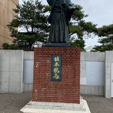 電停の前に坂本龍馬の像があります。