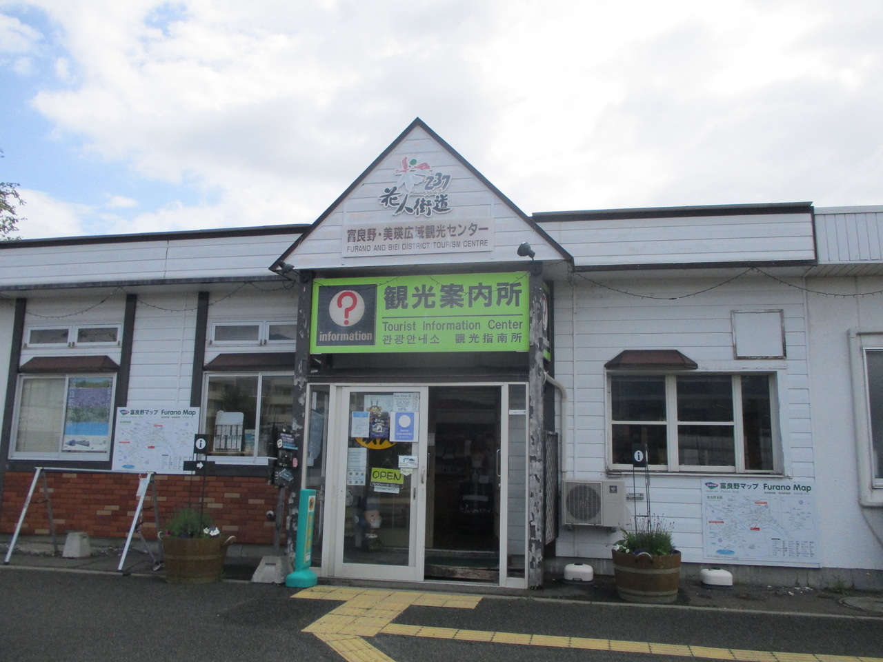 JR富良野駅のすぐ横にあり、インフォメーションと書かれていて、中に入ってみると、近隣の地図などがあったので、周辺の観光スポットについてお尋ねしましたが、知らないと言われました。外国人が多く訪れるのか日本人には対応していないのか不明だった。