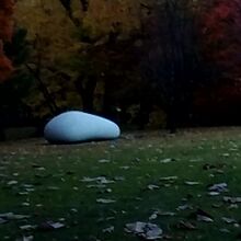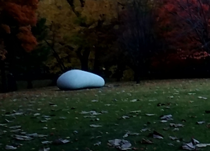 10月の下旬に、知事公館に行って、帰りにお庭を歩いて帰ったのですが、その時に、芝生のお庭にあった白い石です。