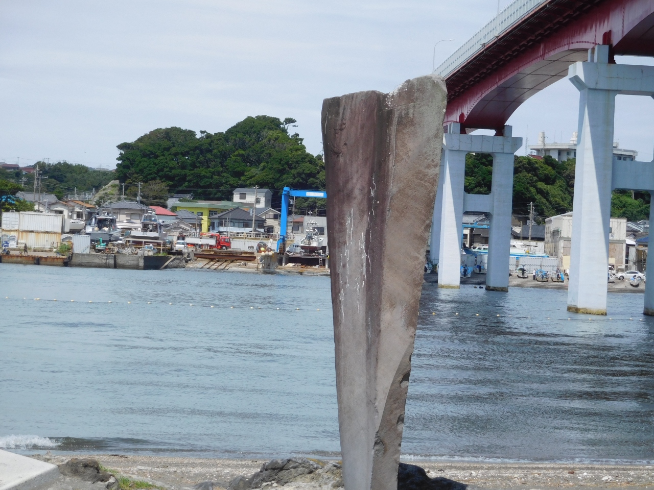 城ヶ島大橋を渡った城ヶ島の東側、「白秋碑前」のバス停から少し歩いた先の砂浜に「白秋詩碑」が立っていました。昆布のような不思議な形をした碑で、白字で詩が書かれているようでしたが、読みづらかったです。城ヶ島大橋のすぐ下にある場所で、ひっそりとした場所にあるという印象でした。