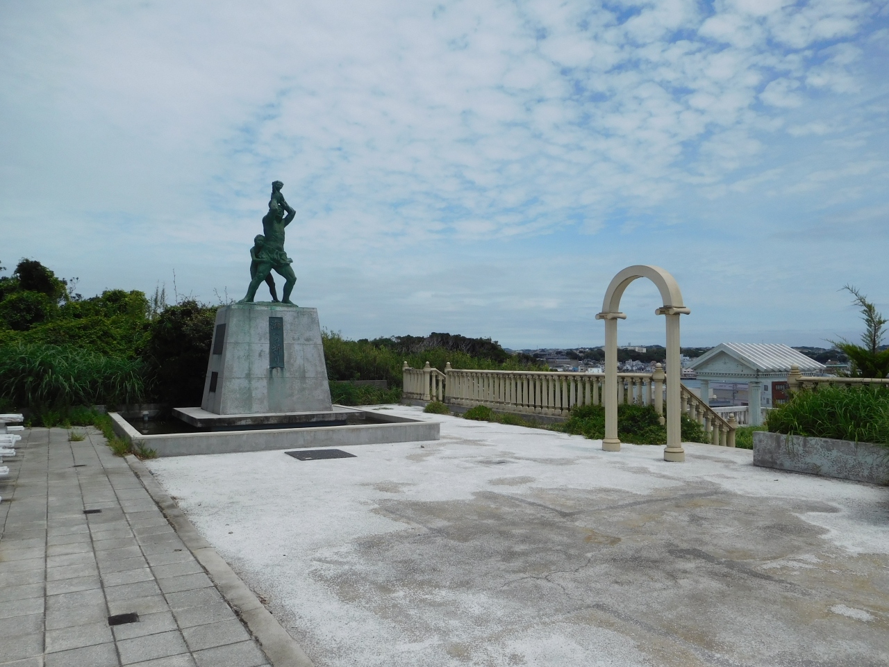 城ヶ島の西側にある「城ヶ島灯台」に向かう途中にある広場が「城ヶ島灯台公園」のようです。灯台に向かって階段を上って行く途中、シンプルな広場があり、休憩所?見晴らし台?座るような場所も特に見当たらなかったので、不思議な空間の場所という感じがしました。