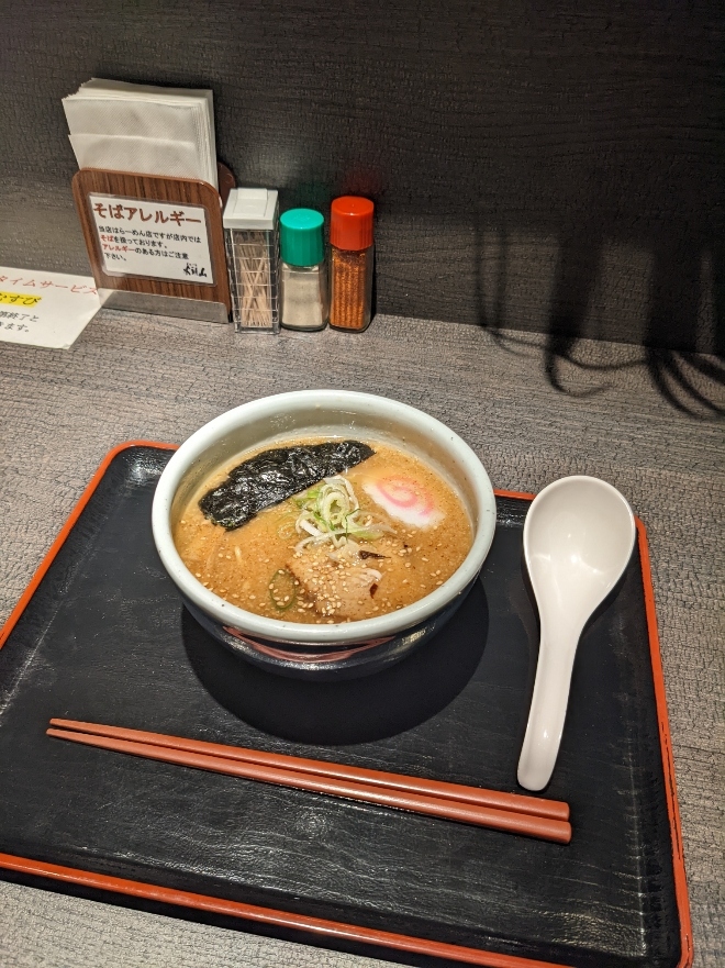 出張時、ランチタイムに1人で来店。平日だったせいかすぐに入店できました(前夜に通りかかった時は行列だった)。カウンター席には1人客が数人、テーブル席には家族連れやグループが数組。多くは「塩ラーメン」を注文していました。