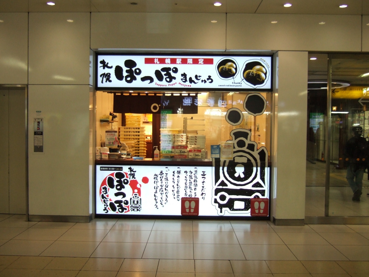 札幌駅の西改札口を出ると、正面にあるぽっぽまんじゅう。わかさいもがやっているお店です。