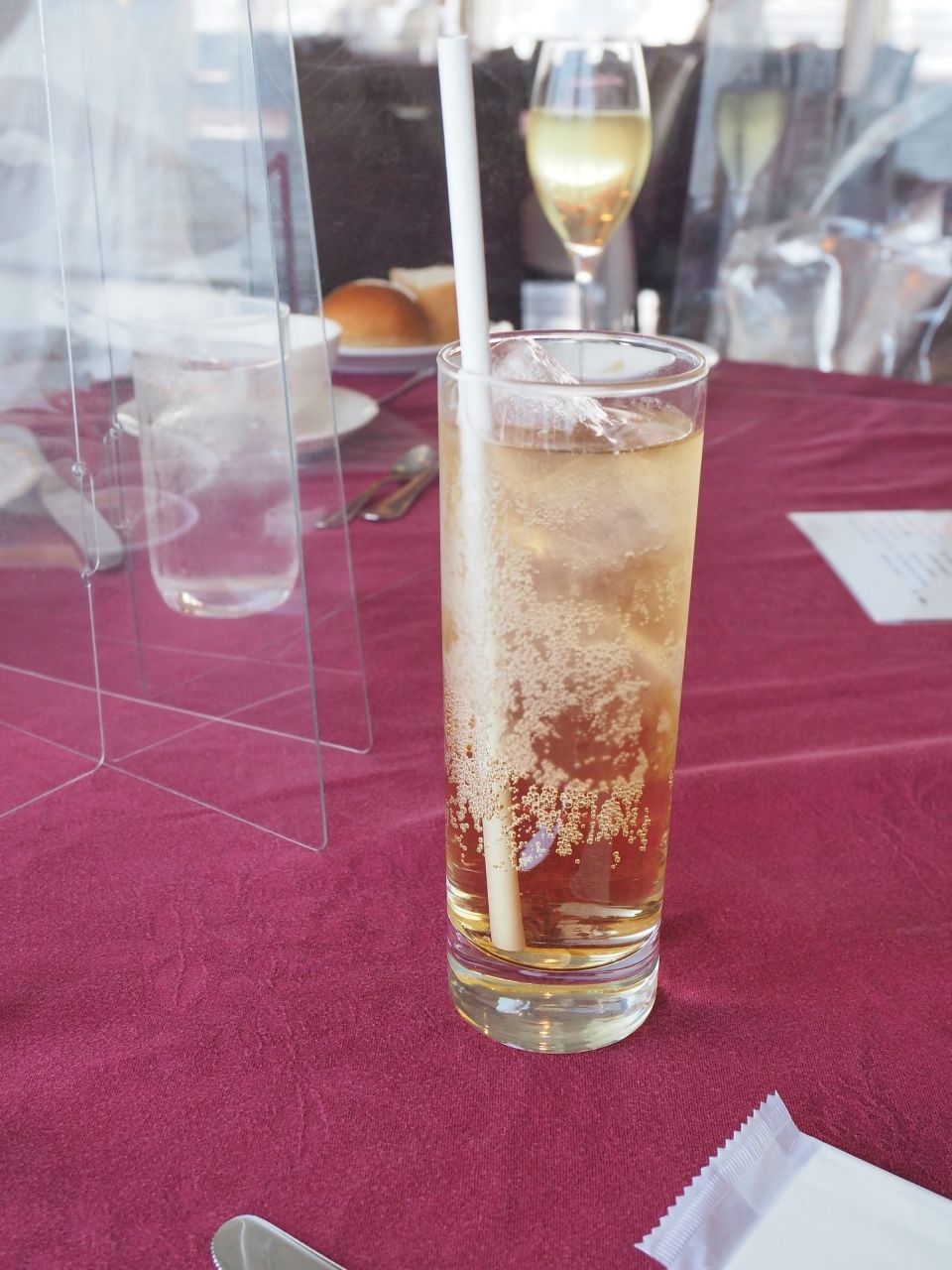 船内でスープ・サラダ・ステーキ・デザートのランチをいただけます。