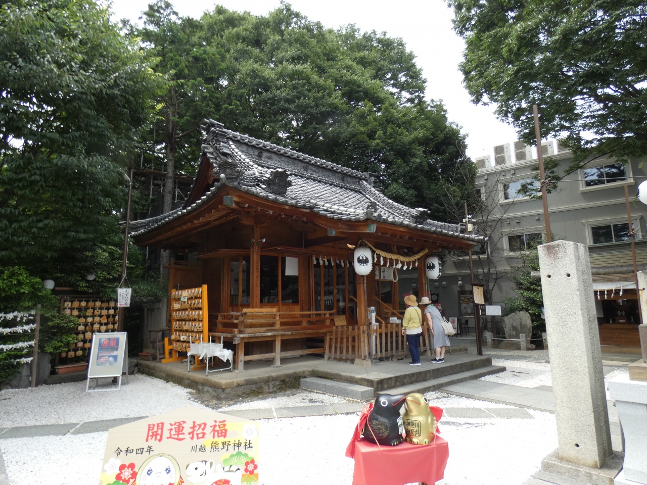 繫華街クレアモールの北端から中央通りに入った所に鎮座する神社。天正18年(1590)蓮馨寺の二世然誉文応僧正が紀州熊野より勧請したことが始まりと伝わります。御社紋は熊野大神の使いの八咫烏で境内には金と黒の八咫烏が置かれています。開運・縁結びの神様として親しまれています。