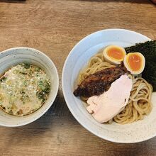 今回は人気No. 1のつけ麺に煮卵をトッピング。