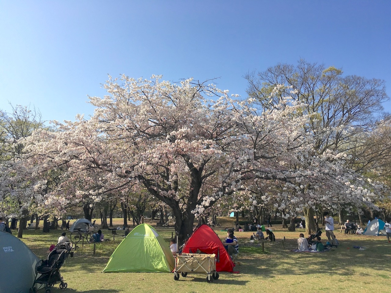 広場には桜の樹が立ち並び、その下にいくつものテントが設営されていました。