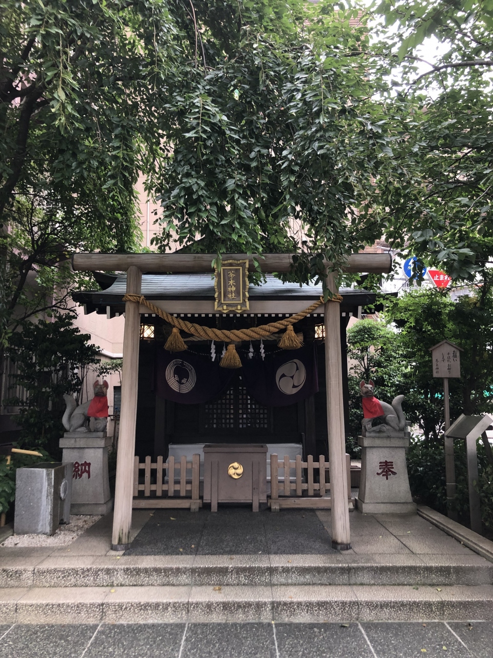 日本橋七福神の一つで、布袋尊を祀っています。路地に面して建つ小さな神社でした。名前の由来は、社の周りに茶の木が植えられていたことから、このような名前が付いたのだそうです。現在、植えられているのが茶の木がどうかはわかりませんでしたが、今も緑に囲まれて落ち着いた雰囲気の神社でした。