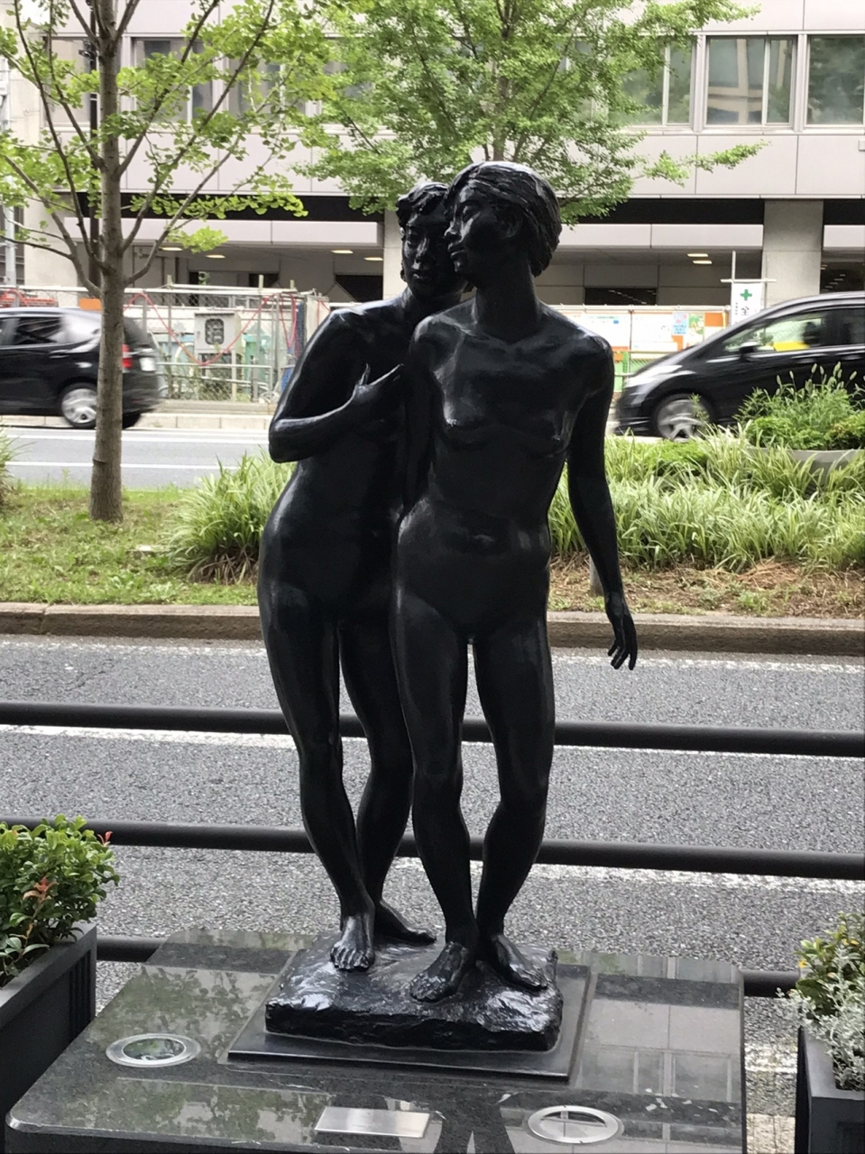 淀屋橋から心斎橋くらいまで、ユニークな彫刻がたくさん並んでいます。この辺りは、せかせか通るのではなく、この天井のない美術館をゆっくり味わいたいですね。「姉妹」という彫刻は、信頼感で結ばれた雰囲気がよくでていました。