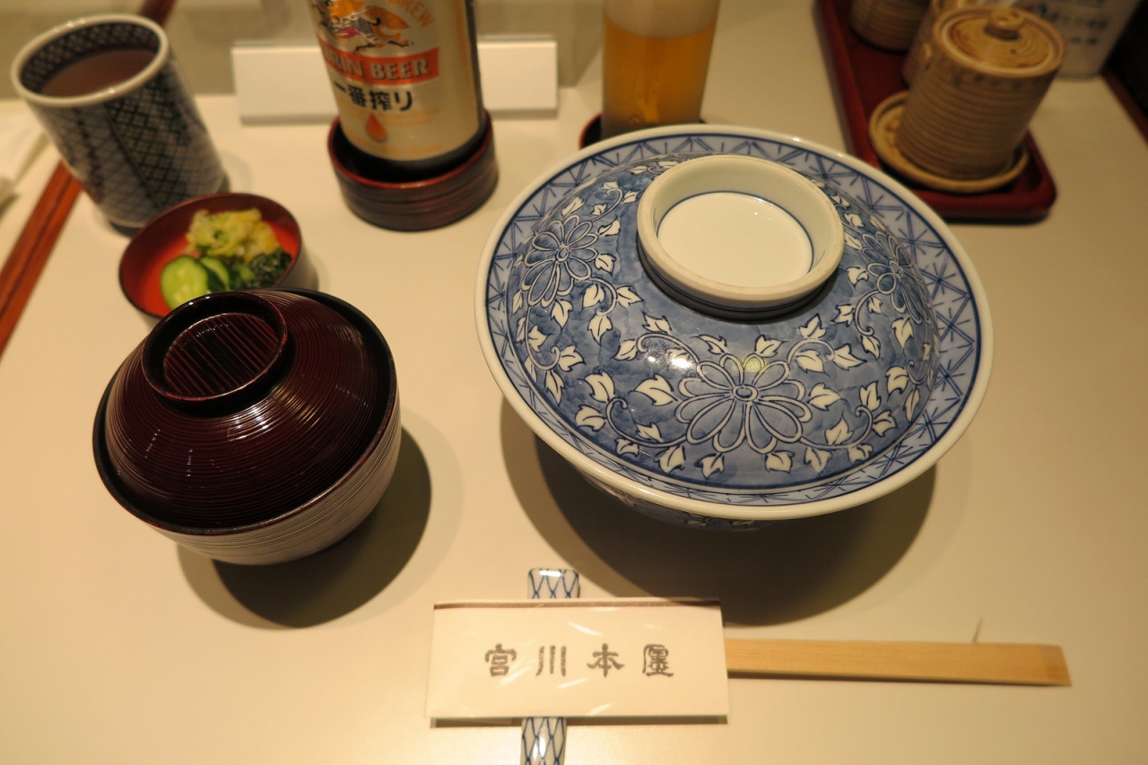 「宮川本廛」、かつて数回「相鉄ジョイナス(現ジョイナス)」にあったお店を利用しましたが、もう10年以上前のお話です。今回「銀座松屋」8階で見かけ、懐かしくなって昼食としました。お店の造りは茶室風、入口に一番近い席に案内されたので席数とかは分かりませんが、比較的小ぢんまりしていると思います。だからでしょう、店員さんの目配りもなかなか良いものでした。注文したのは「お昼のおたのしみ(2695円)」で、内容は通常2640円のこいち丼(鰻半身の丼、お吸い物、お新香)にお口直しの甘味がついているものです。肝心の鰻は…とても柔らかいのに水っぽくなく、関東風の良い蒸し具合・焼き具合でした。だけど、正直言ってもう少し鰻が食べたかったなぁ…。