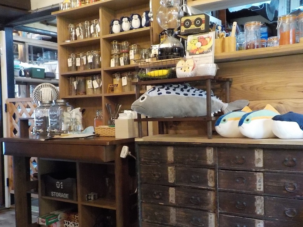 足守の町並みに溶け込んでいる古民家カフェ。お手洗いがないのですぐそばの観光駐車場のお手洗いを利用することになります。可愛い小物やスパイスの入った容器が並べられていてオシャレです。スパイスカレーは3種類ほどありました。フルーツサンドもボリューミーでおすすめです。