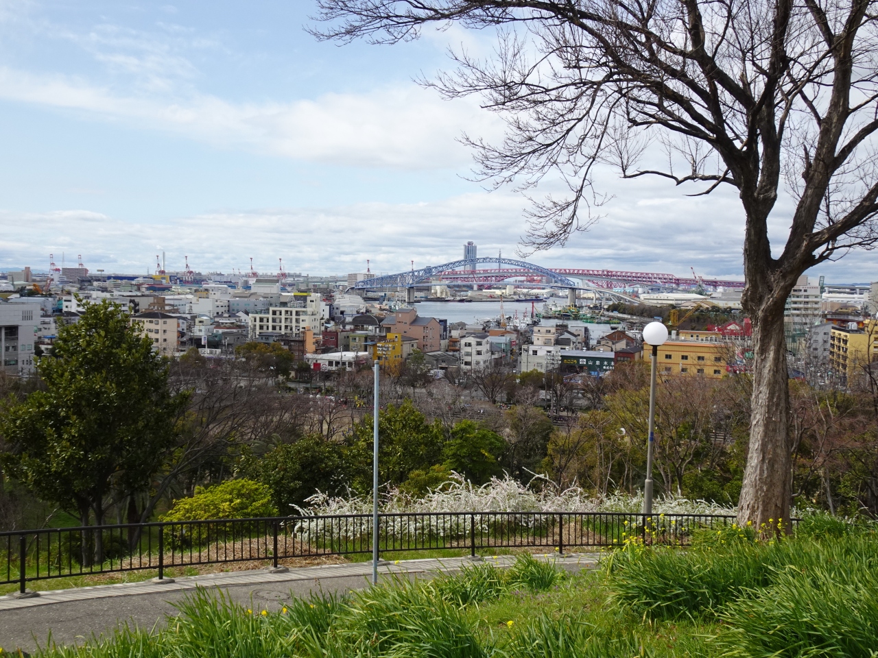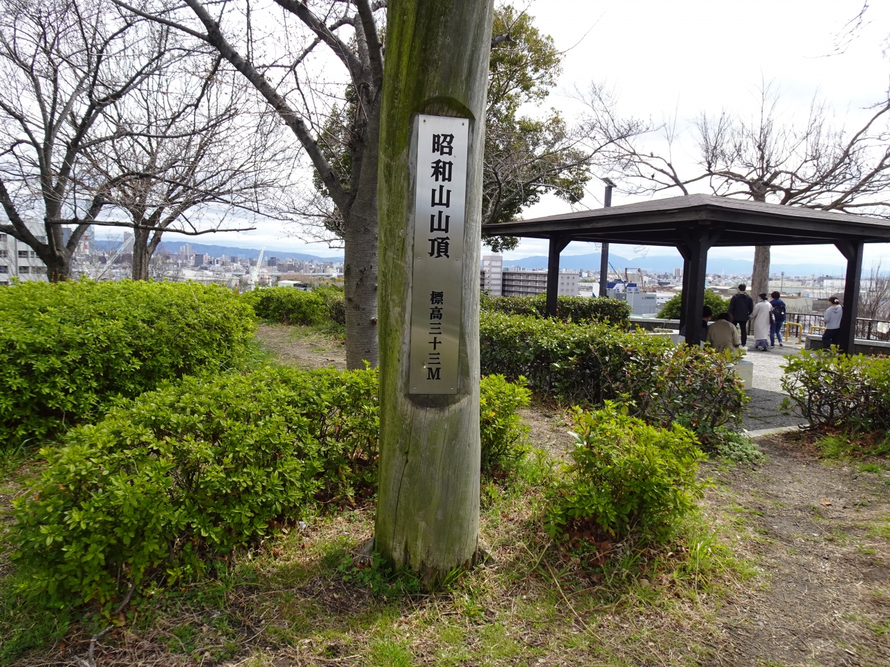 公園の中心は地下鉄工事の残土で造成されたという「昭和山」。標高33メートルの山頂からは大阪港など下から想像する以上の景色が楽しめます。山頂へのアプローチは、山肌をぐるっと囲むスロープが設けられ勾配がそれほどきつくないのは助かります。