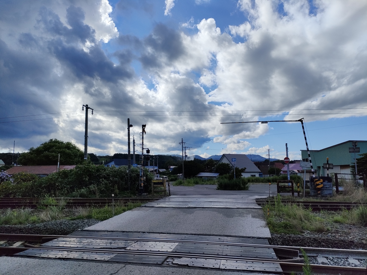 また、車窓からも眺めることができ、その様子は函館本線と分岐してもしばらく後方(東室蘭方面行きの列車)に見続けることができ、むしろ神社に近い側を通る函館本線の車窓よりも長い間、見続けることができました。