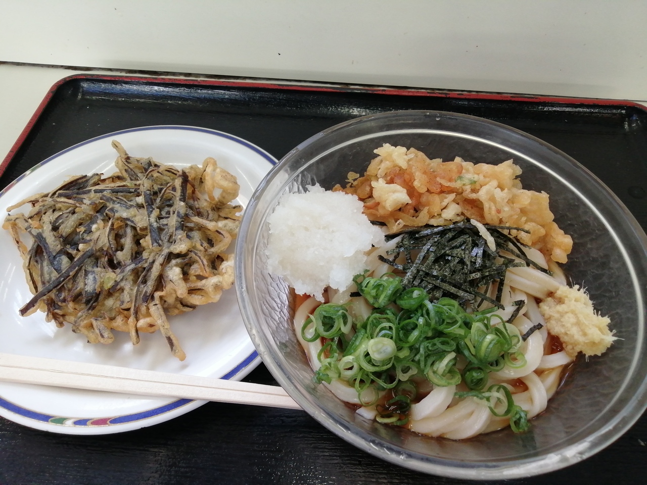 ぶっかけ小(350円)にこんぶ天(130円)をトッピング。いや~こんぶ天がデカい!けど硬くてごわごわで超食べにくい。あまりおいしくないし…。これってこういうものなんでしょうか。そのせいでうどんもおいしくいただけませんでした。残念…。