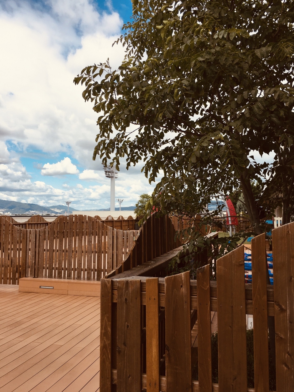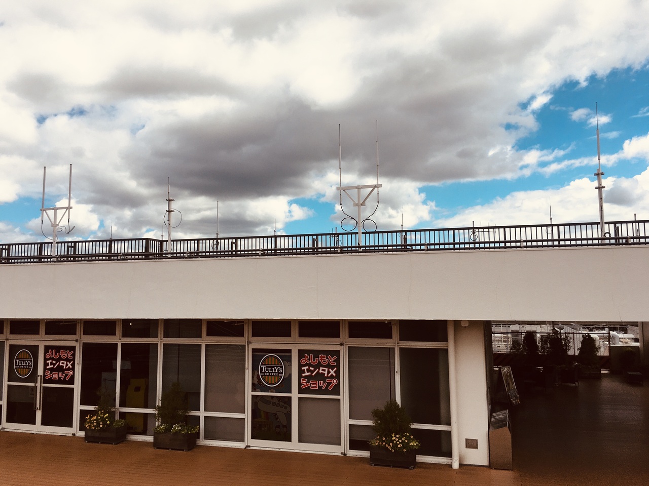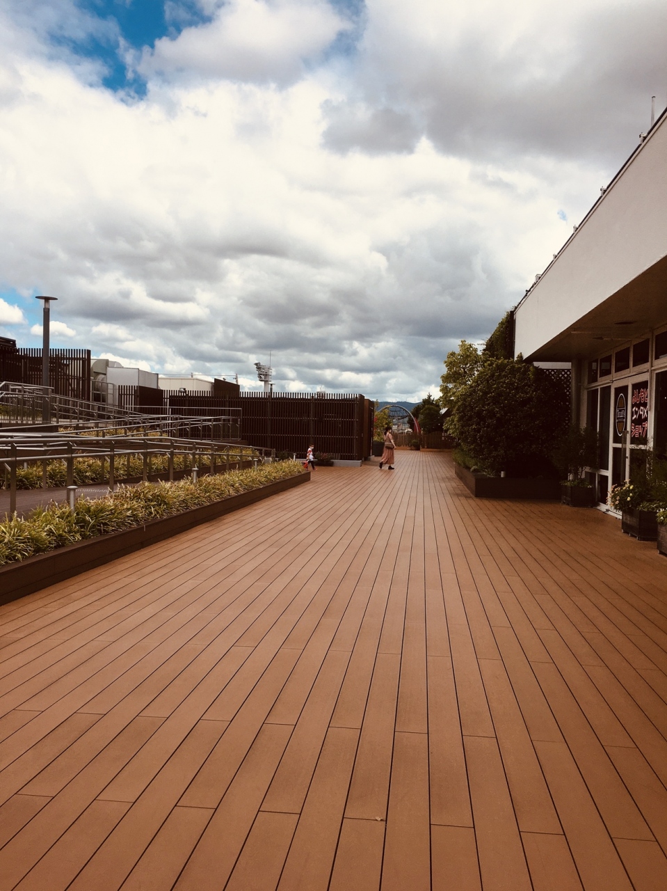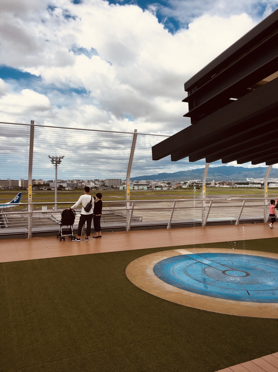 専用デッキが2箇所あって飛行機の離発着を見ることが出来、椅子もあるのでゆっくりと見ることが出来ました。デッキ後方には土産屋、食べ物屋もあり、建物の上の部分では苗木のようなものがたくさんありました。常に飛行機の音が聞こえていました。
