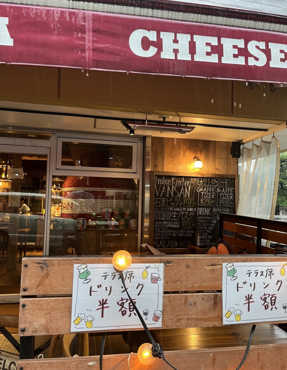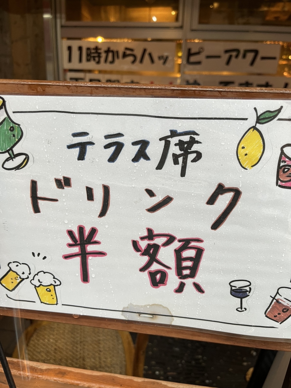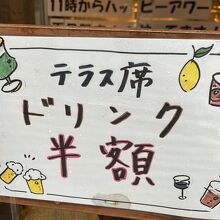 テラス席 ドリンク半額でした。