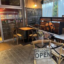 数人が雨降りの中 テラス席を 利用していました。