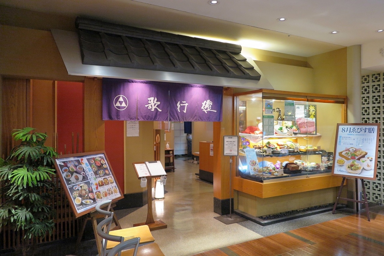 「歌行燈」、20数年前にバンコクで初めて利用した日本料理店が「バンコク伊勢丹」にあった「歌行燈」でした。その後も「エンポリアム」のお店もしばしば利用したのですが、すでにバンコクから撤退してしまったのですね。そんな懐かしい「歌行燈」を見かけて利用しない手はありません。店内は数寄屋風、間接照明などを用いてあって、外国にある日本料理店といったデザインは面白いと思います。お茶と一緒に「とうもろこしせんべい」が1枚出されたサプライズ、良いサービスだと思います。料理の味はまあまあながら、さすが元はうどん屋さん、「紀州南高梅と揚げ茄子おろし麺」は美味しかったです。バンコク店、復活してくれたら良いなぁ。