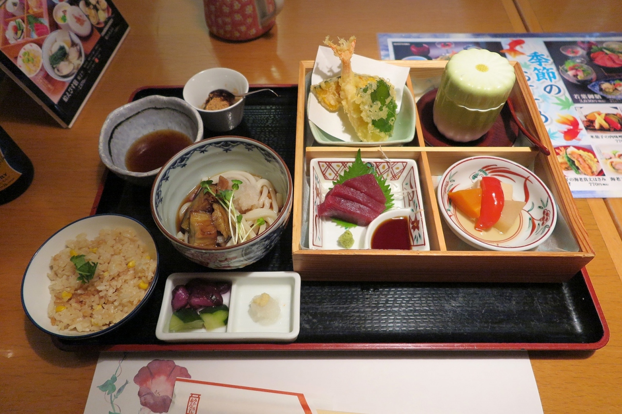 - さすが本業はうどん屋さん、「8月ゑびす膳」にあった「紀州南高梅と揚げ茄子おろし麺」、おいしかった