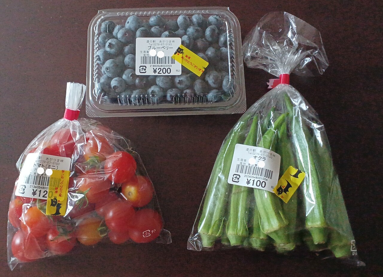 ドライブの休憩に立ち寄った。隣に温泉、裏手に足湯、公園、ドッグランもあった。観光案内の建屋や屋外(屋根付き)のテーブルと椅子もあり。農産物直売でオクラ、ミニトマト、ブルーベリーを購入。どれも安くて美味しかった。