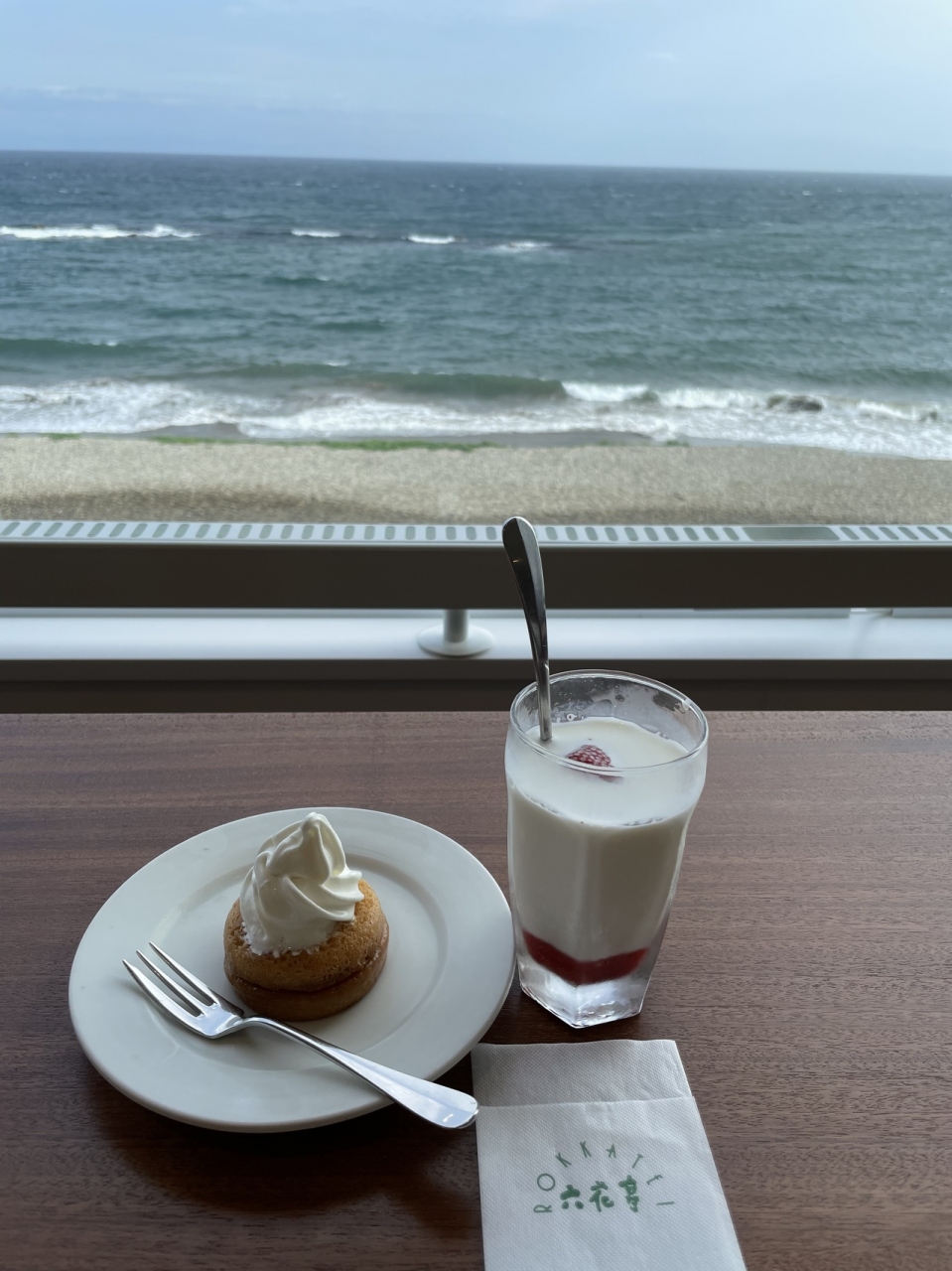 長いエントランスを歩いて入店する期待が膨らむ構造になっています。海を一望できるカウンター席でお茶をすることがお目当てで運よく空いていました。席からは真正面に津軽海峡、右手に立待岬まで眺められてとても良いロケーションでした。メニューは甘味だけでなくカレーやピザなどもあるのでランチでの利用でも良いと思います。接客も丁寧でした。