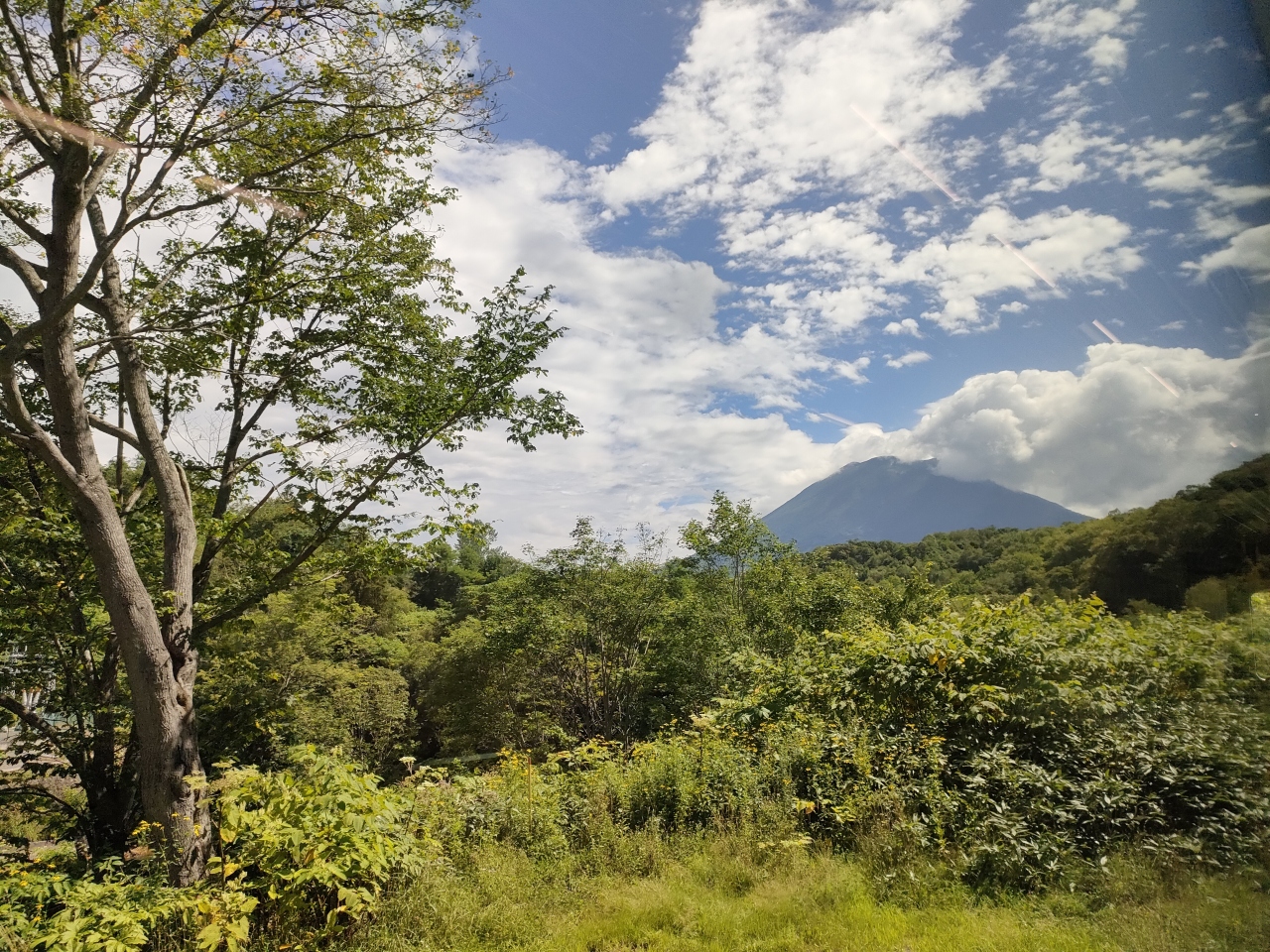 特に、倶知安駅と比羅夫駅の間では、間近で畑や林の向こうに聳える雄大な羊蹄山が見えます。
