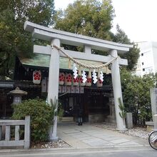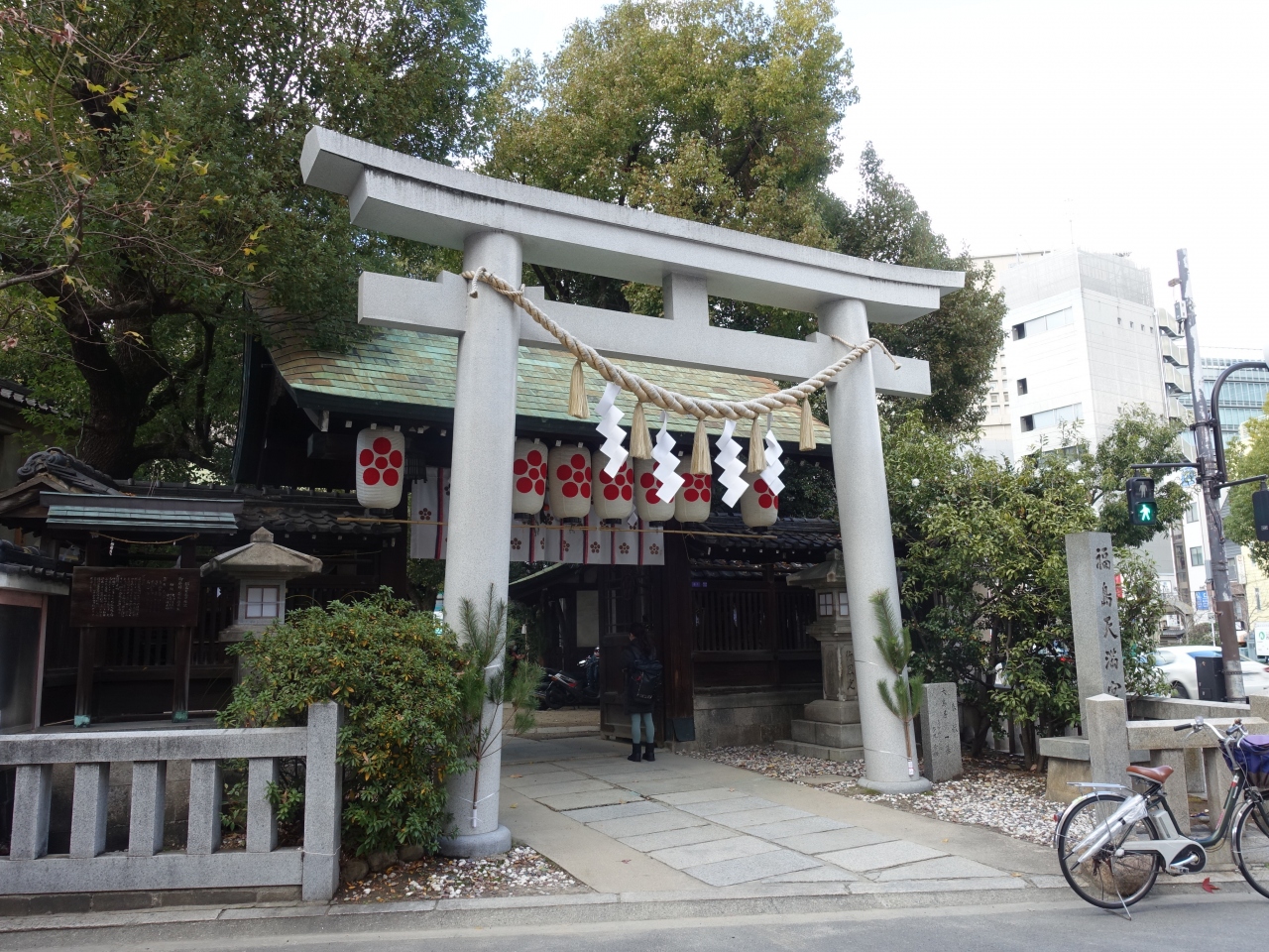 JR新福島駅のすぐ南側にある神社です。難波筋に面していますが、木々に囲まれた静かな場所です。菅原の道真が大宰府に失意のうちおもむく途中、村人徳次郎が旅情を慰めたことをすごく喜んで、この地を福島と名付けたと言われています。大宰府で道真が亡くなったのを聞いた村人がここに祠を建てたのが初めといわれ上の天神とも呼ばれているそうです。