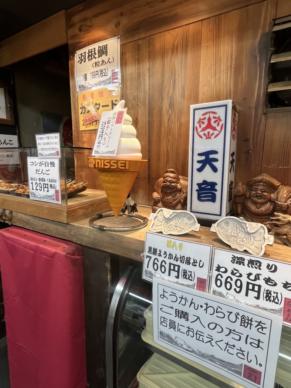 コシが自慢「だんご」そして「ようかん」「わらび餅」「抹茶ソフトクリーム」もあります