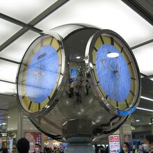 JR名古屋駅の中央コンコースの太閤通口の近くにあります。高さ2.5mほどで金の時計と比べて小ぶりな時計ですが、デザインもスマートで4面あってどの方向からも見やすいです。新幹線の改札口に近いので待ち合わせには便利な目印です。