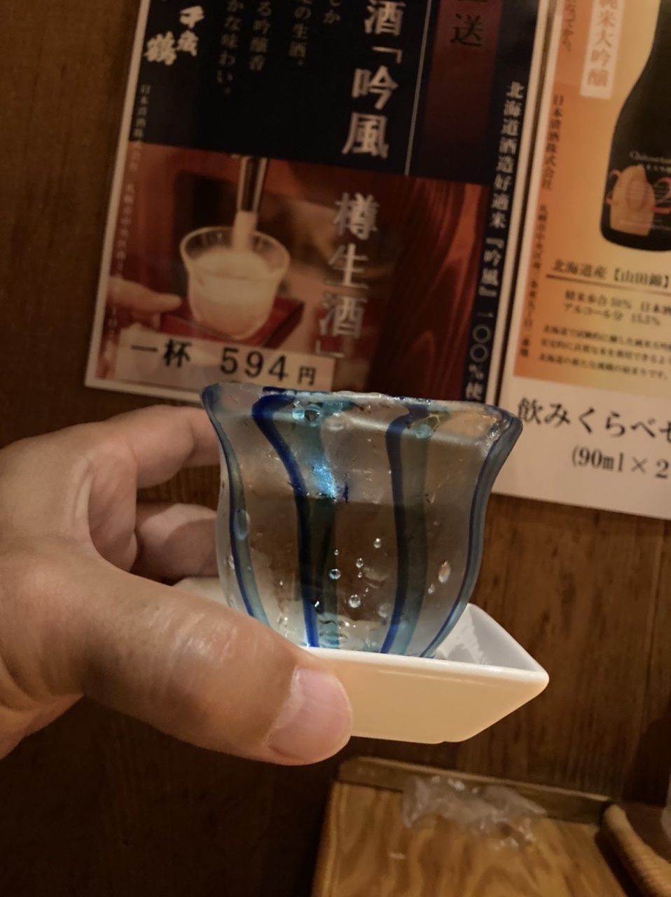 北海道の海の幸と冷酒、うまい。直営店限定の「吟風樽生酒」は、安くて美味しい。道産米の「吟風」を使った純米吟醸酒です。