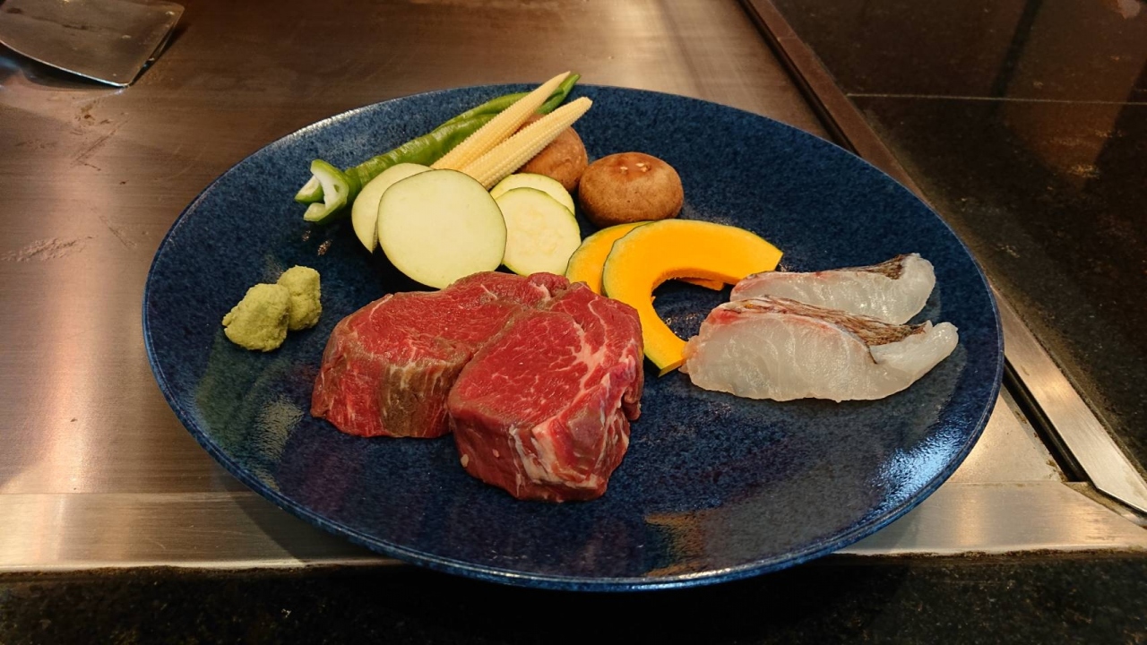 JR八王子駅北口前の京王プラザホテル15階のレストラン。眺望がとても良い。鉄板を囲むカウンター席で焼きながらおいしくいただける。サラダ、焼き物(野菜と肉)、お食事と出てくるがどれもとてもおいしい。デザートは鉄板前ではなく、入り口近くのソファーでのんびりといただけた。