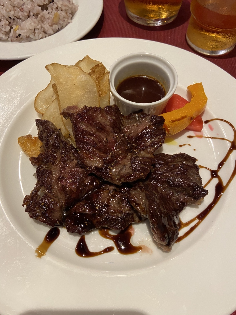 三越前の老舗。地下で入りづらいですが店内クラシックなインテリアで結構広いです。柔らかく工夫されたカットのハラミステーキは美味。主食を黒パンと雑穀米から選べるのも◎。そしてキンキンに冷えたルイボス茶がピッチャーで出てくるのも今の時期嬉しいサービスです。