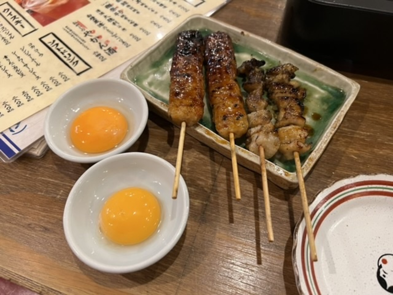 生ビールが300円のキャンペーンをしてたからかけつけ2杯!焼鳥は皮とつくね。そして日本酒に。博多もつ鍋は味噌は無くて醤油。ライン友達になりトッピングサービス、辛子明太子を投入。辛子明太子を入れると美味しいね。最後はおじやで〆!