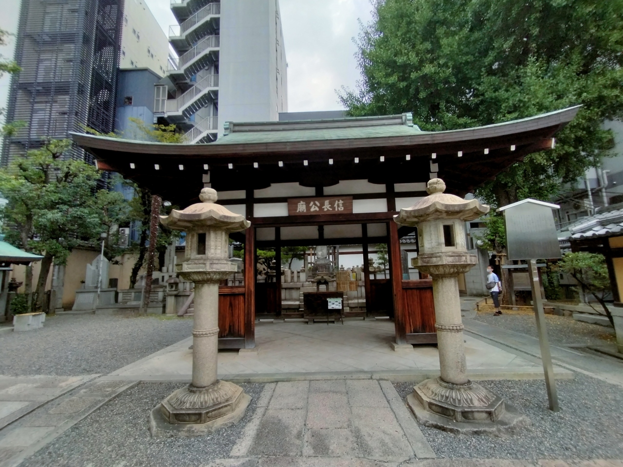 新京極から続く寺町通りにあって本堂の裏手には織田信長一族と森蘭丸をはじめ、本能寺の変で亡くなった家臣の供養塔がありました。