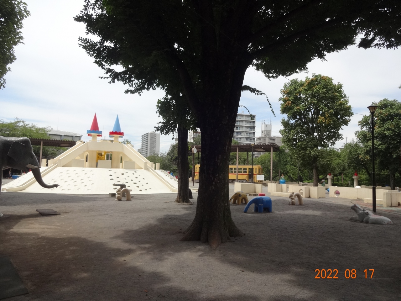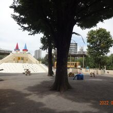 子どもの遊具や広場がありますが、今日は暑すぎるのか、子どもの姿は少なかったです。