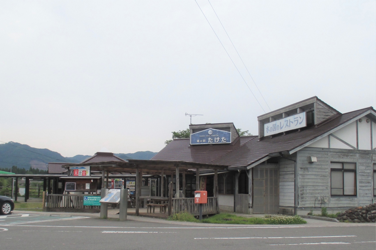 レストラン棟の正面には善米食堂とありますが、建物の高いところには「水の国レストラン」と掲げられていました。どうやら、道の駅の自営レストランからテナント・レストランに変わった様です。食事時ではなかったので空いていました。ここは豊後牛の地ですから、ハンバーク、ステーキが売りの1つの様でした。