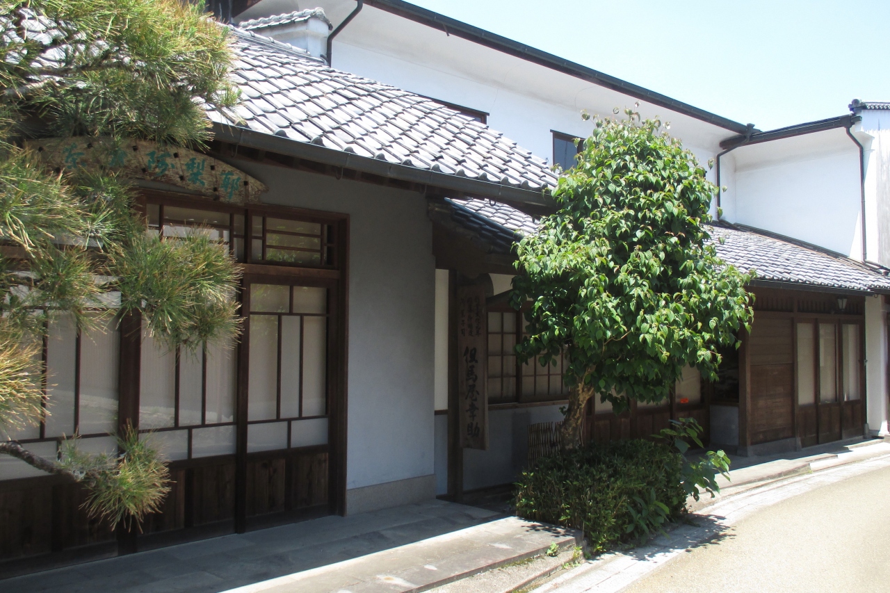 但馬屋老舗・但馬屋新屋は、廉太郎トンネルの東側の出口と本町通りを繫ぐ路地にありました。本来であれば、お店前のガラス戸が開かれていると思うのですが、閉められてカーテンが引かれていました。休業しているのか、閉店したのか、いずれにしろ、今は営業していない様です。入口の上には「茶房 阿梨耶」(「ありや」でしょうか)と読める看板が上がっています。左には「創業文化元年 旧岡藩御用達 御菓子司 但馬屋」、「竹田銘菓 荒城の月」、「元祖 三笠野」と書かれたものが下がっていました。また、本町通り寄りには、併設されているギャラリー「ムジーカ・ガレリア・アラヤサーラ」の文字も見えました。
