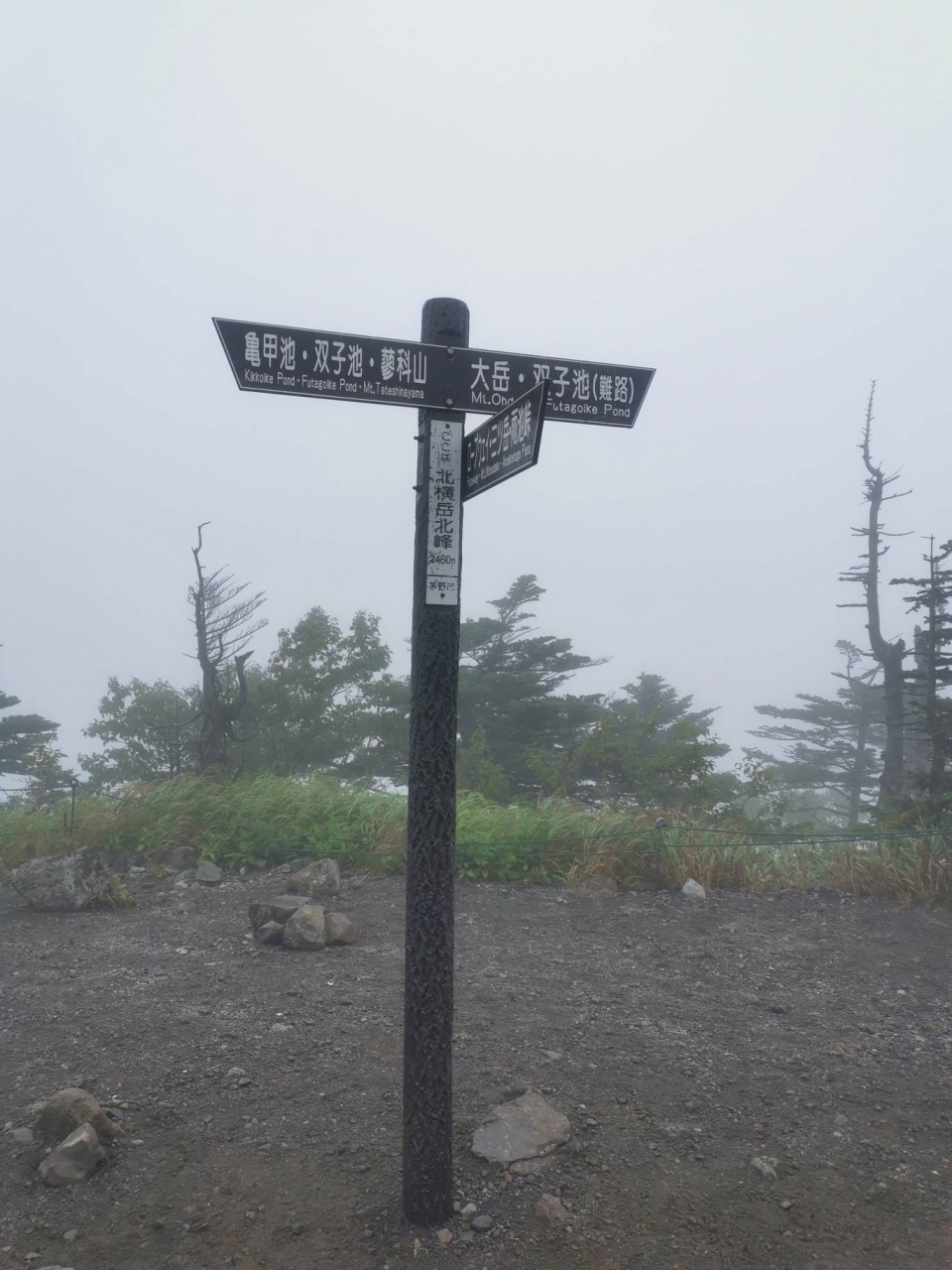 天気が良ければ山頂からは周囲の山々の眺望が楽しめるようですが、残念ながら天気が悪く景色は楽しめませんでした。
