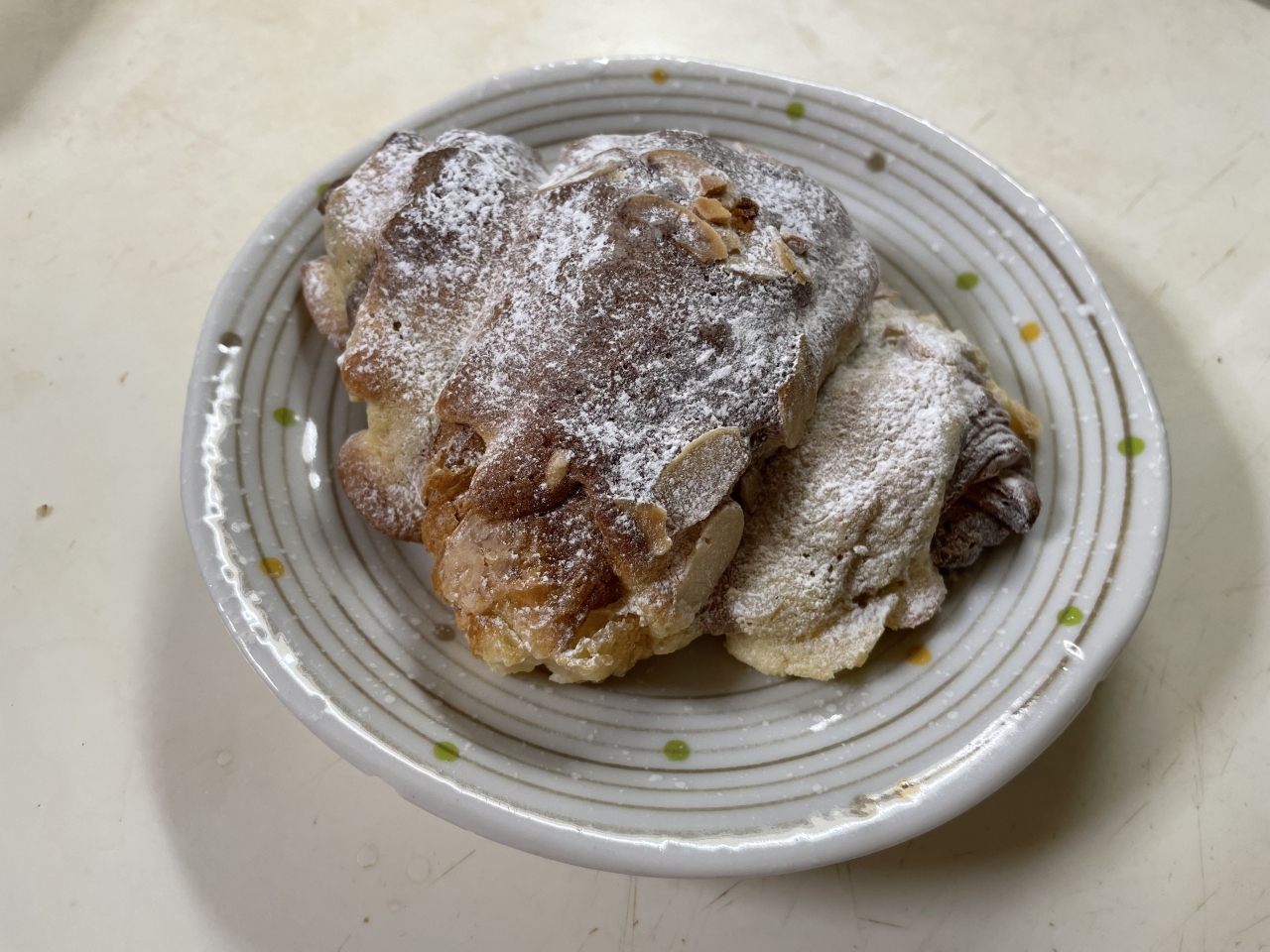 四条烏丸駅に向かう途中、地下に行くとお店前を通りかかり入店しました。京都ではよく見かける老舗パン屋さんです。入口を入ってすぐのところにパンが並び、奥にはイートインコーナーがあり広々としています。夜だったのでパンのラインナップはかなり少なかったですが、クロワッサン・ショコラ・アマンドが美味しそうで購入しました。思った通りの甘さでスイーツ感覚でいただきました。