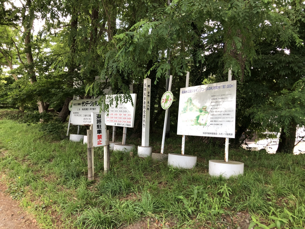 秋田城跡を中心とした公園です。車でアクセスし、秋田城外郭東門近くに無料の駐車場があるので、そちらを利用しました。復元された秋田城跡の史跡が中心となりますが、ジョギングコースも設けられていて、市民の憩いの場にもなっていました。