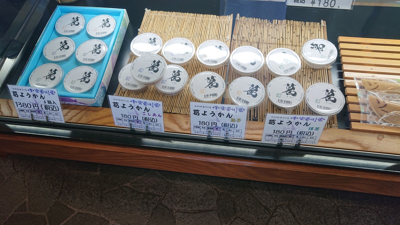 7月下旬の週末の午後に訪問しました。暑さ厳しい時期ということで、先だっての訪問時に引き続き、葛ようかん数点を購入しました。味の種類を問わず、水ようかんとは異なり、多少弾力感のある独特の食感がありました。冷蔵庫で冷やした冷たい状態で、おいしくいただけました。