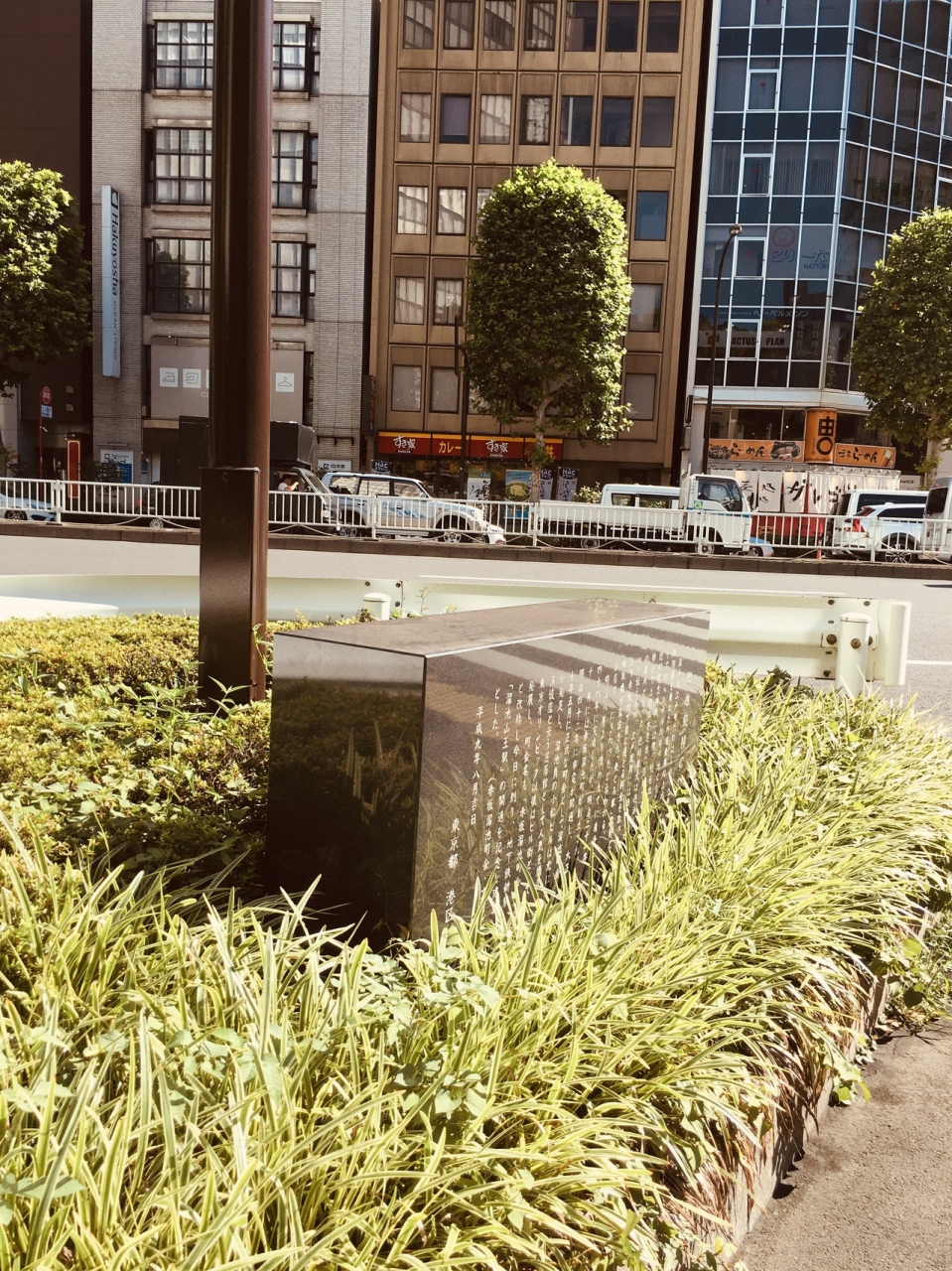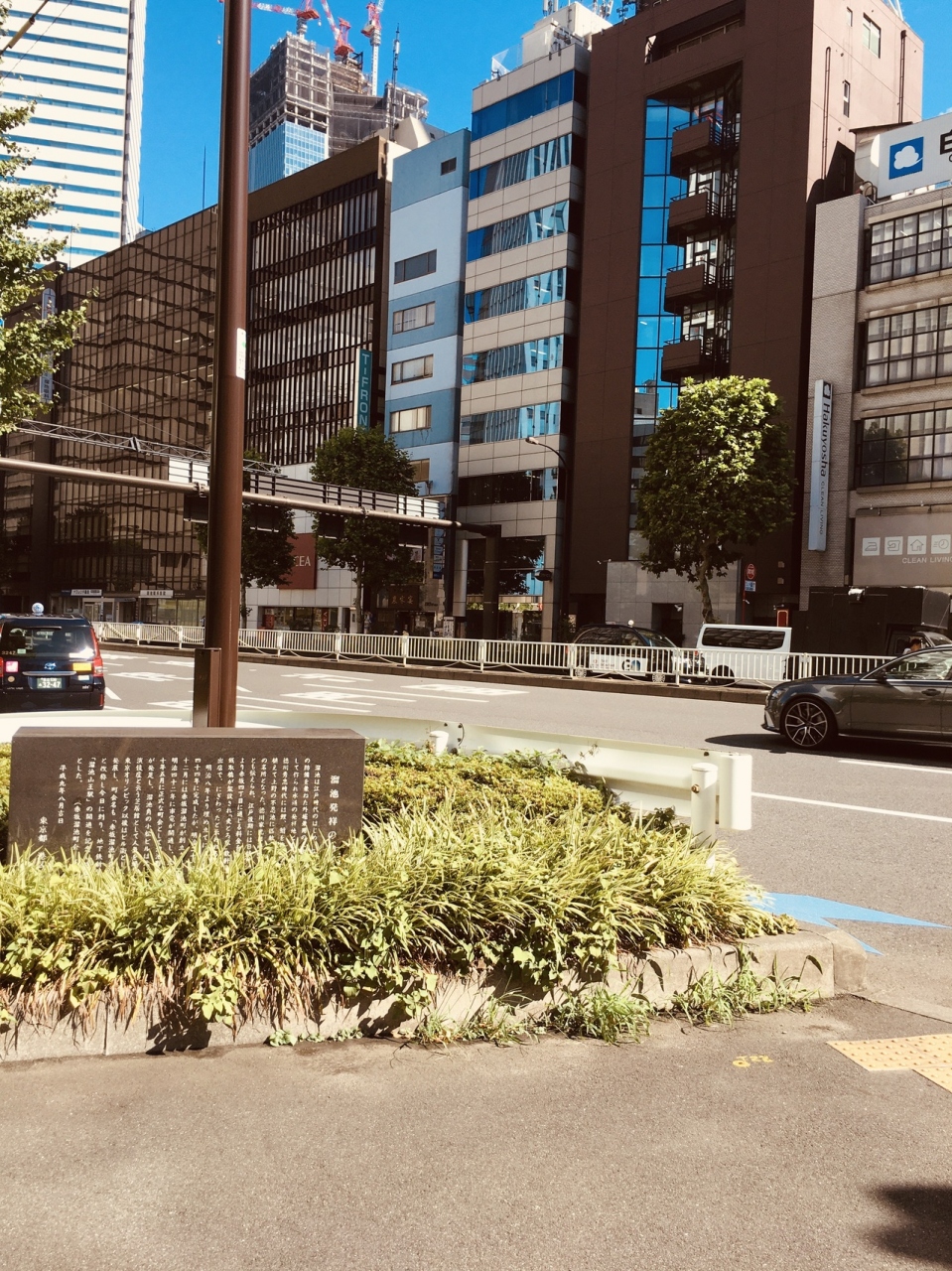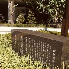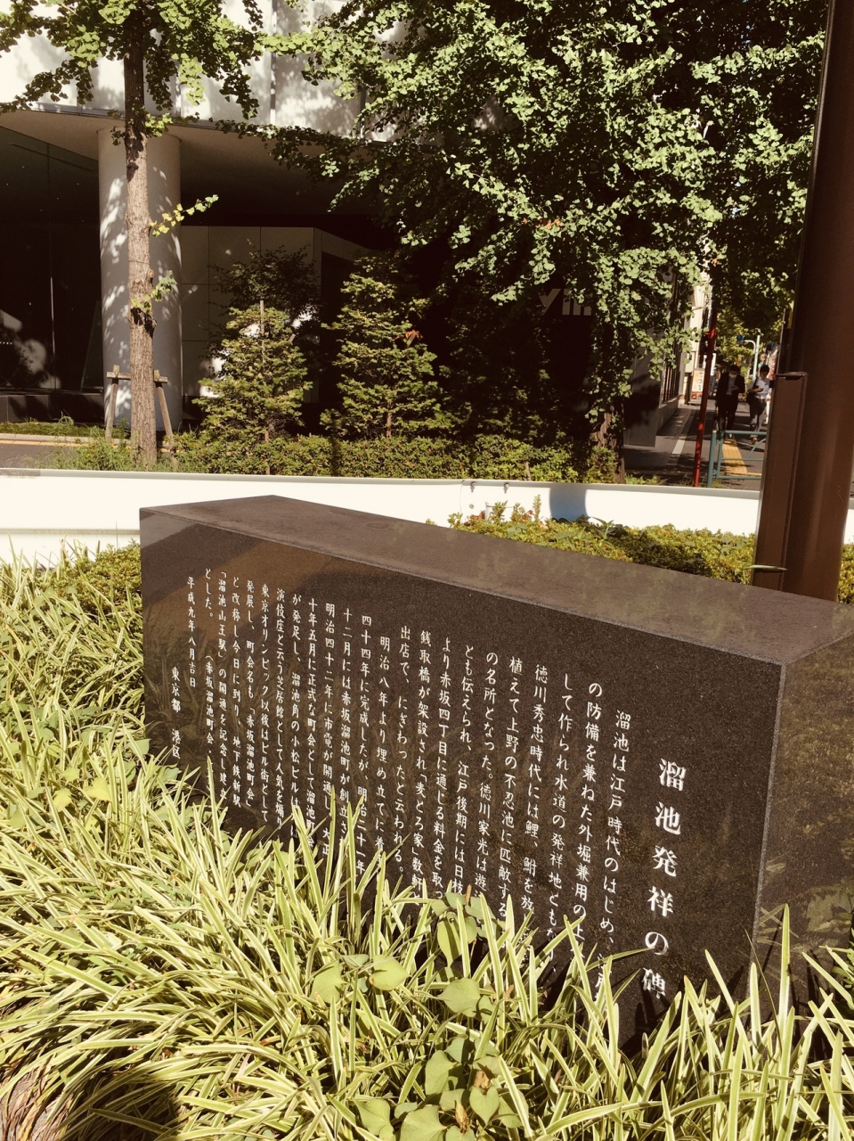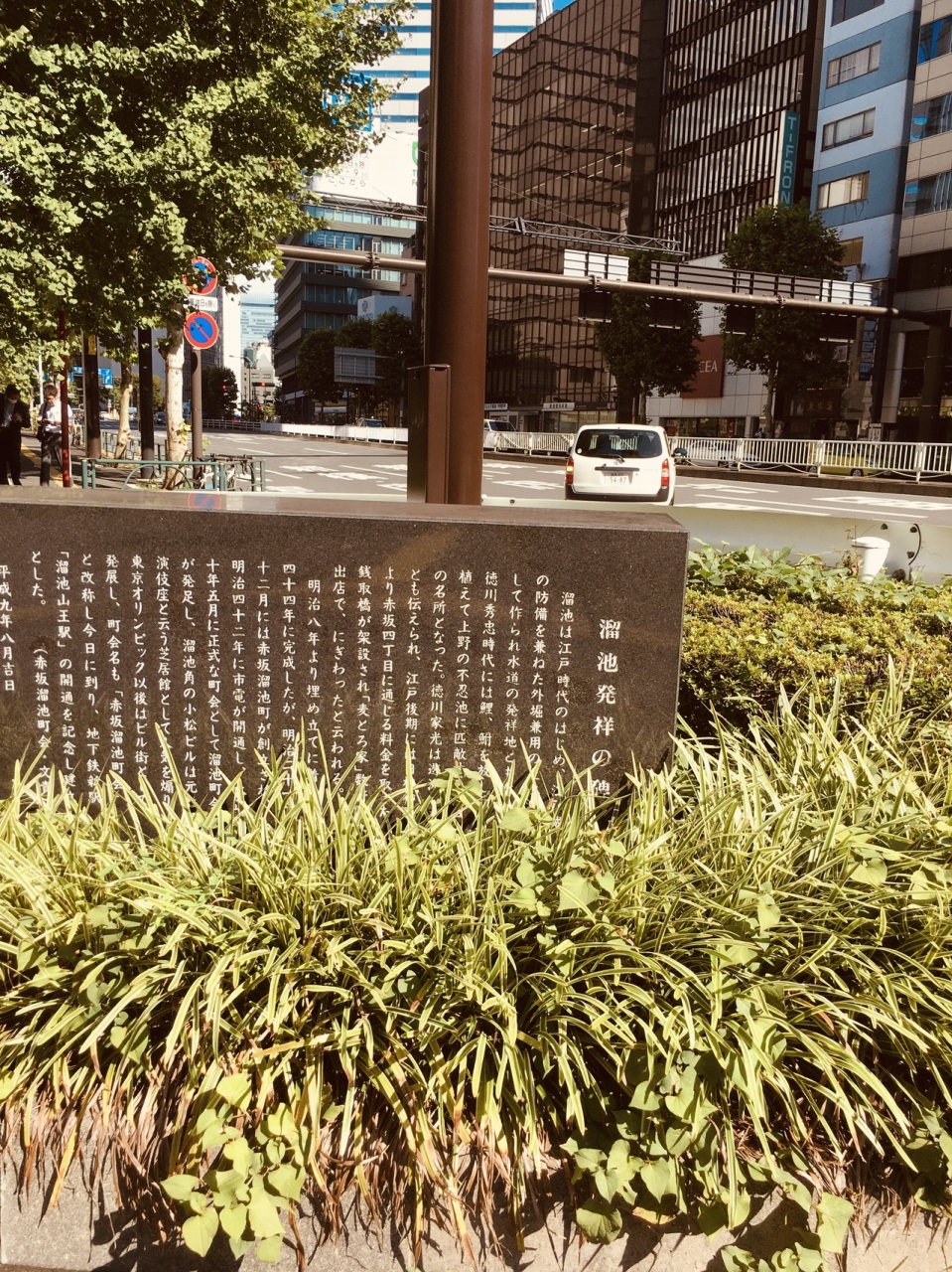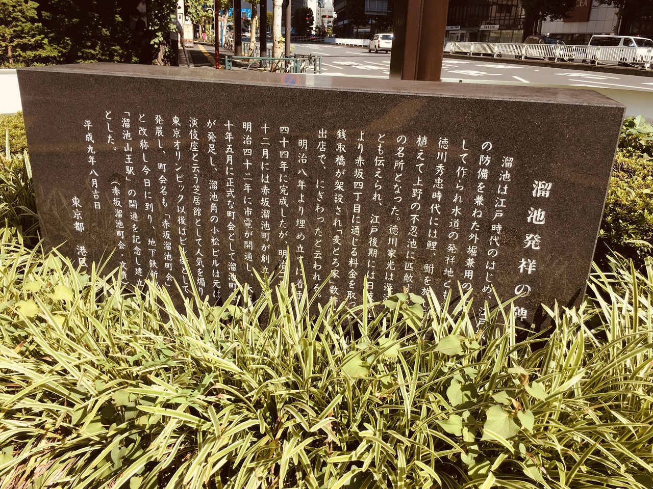江戸時代は、江戸城の防備を兼ねた大きな池があったようですが、現在は池も残っていないようで都会の繁華街になっていて、溜池交差点の角に黒い横型の石碑が建っているのみでしたが、石碑には白い文字で溜池の歴史が記載されていました。